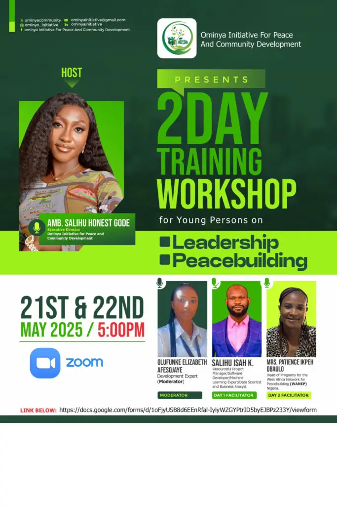 Over two impactful days, the Ominya Initiative hosted a virtual workshop that equipped 152 youth participants, including persons with disabilities, with transformational leadership and peacebuilding skills.